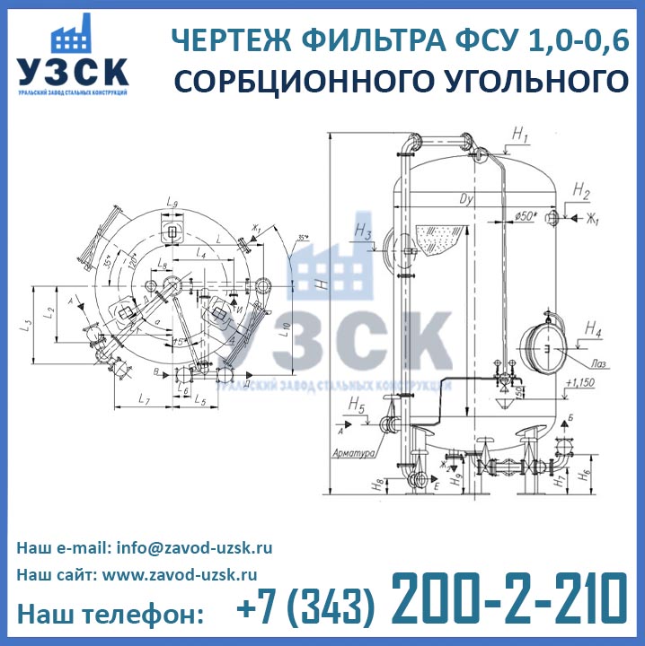 Наш завод (Уральский завод стальных конструкций) является производителем угольных фильтров, сам осуществляет изготовление и реализацию выпускаемой продукции. Приобретая фильтры ФСУ-1.0-0.6 в Раменском от производителя, Вы приобретаете оборудование без наценок всевозможных посредников, а также значительно экономите свое время. Фильтры ФСУ1.0-0.6 завода УЗСК – это гарантия качества, кратчайшие сроки изготовления и цена, которая Вам понравится.